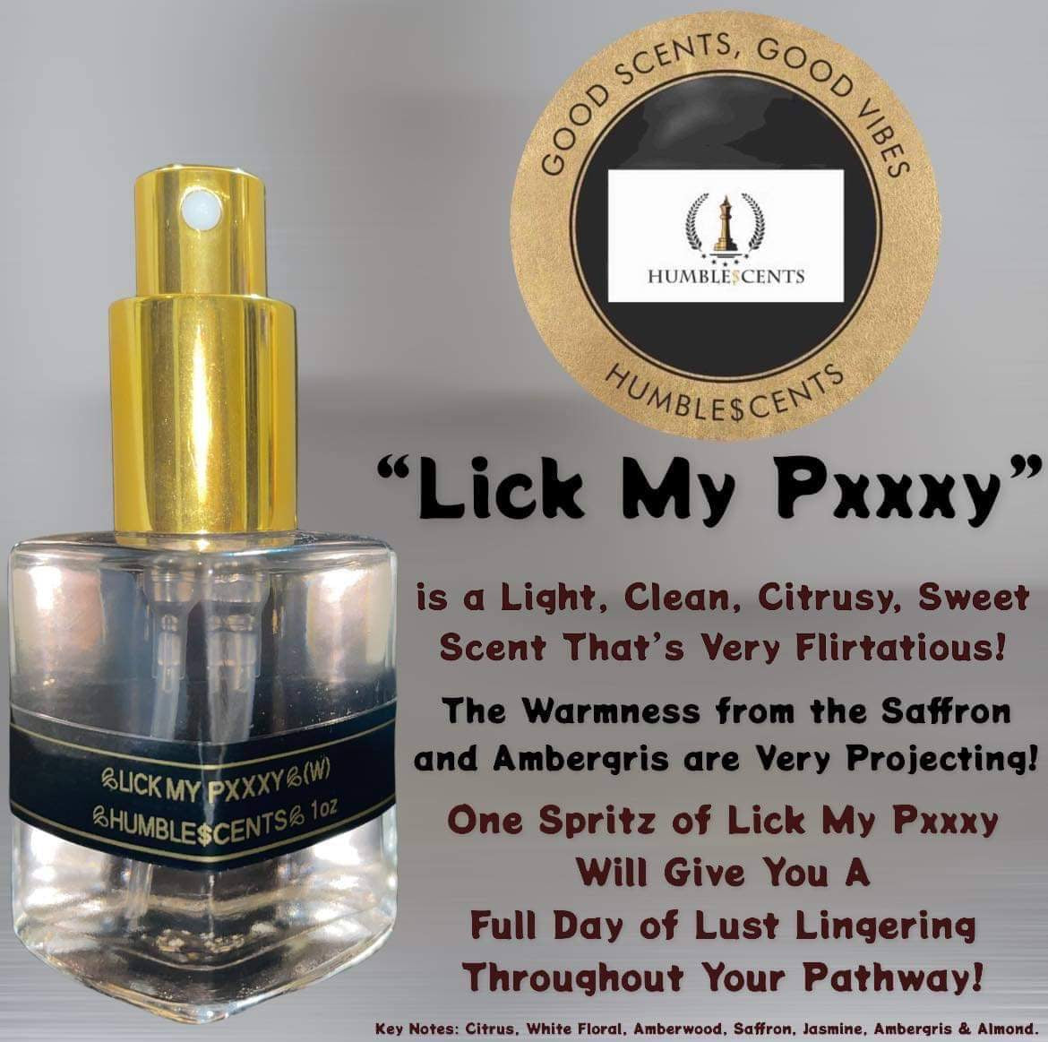 Lick My Pxxxy is a Light, Clean, Citrusy, Sweet Scent that’s Very Flirtatious!